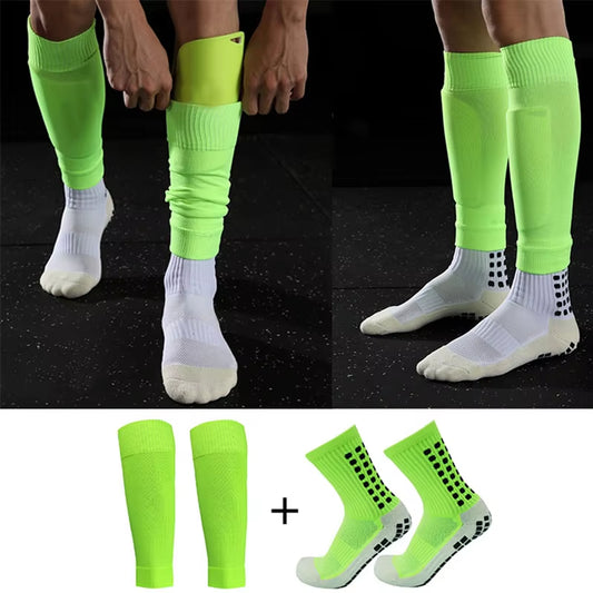 2 Pairs Set Men Grip Soccer Socks and Calf Sleeves Adult Youth Non Slip Leg Cover Guards for Basketball Football Sports Socks